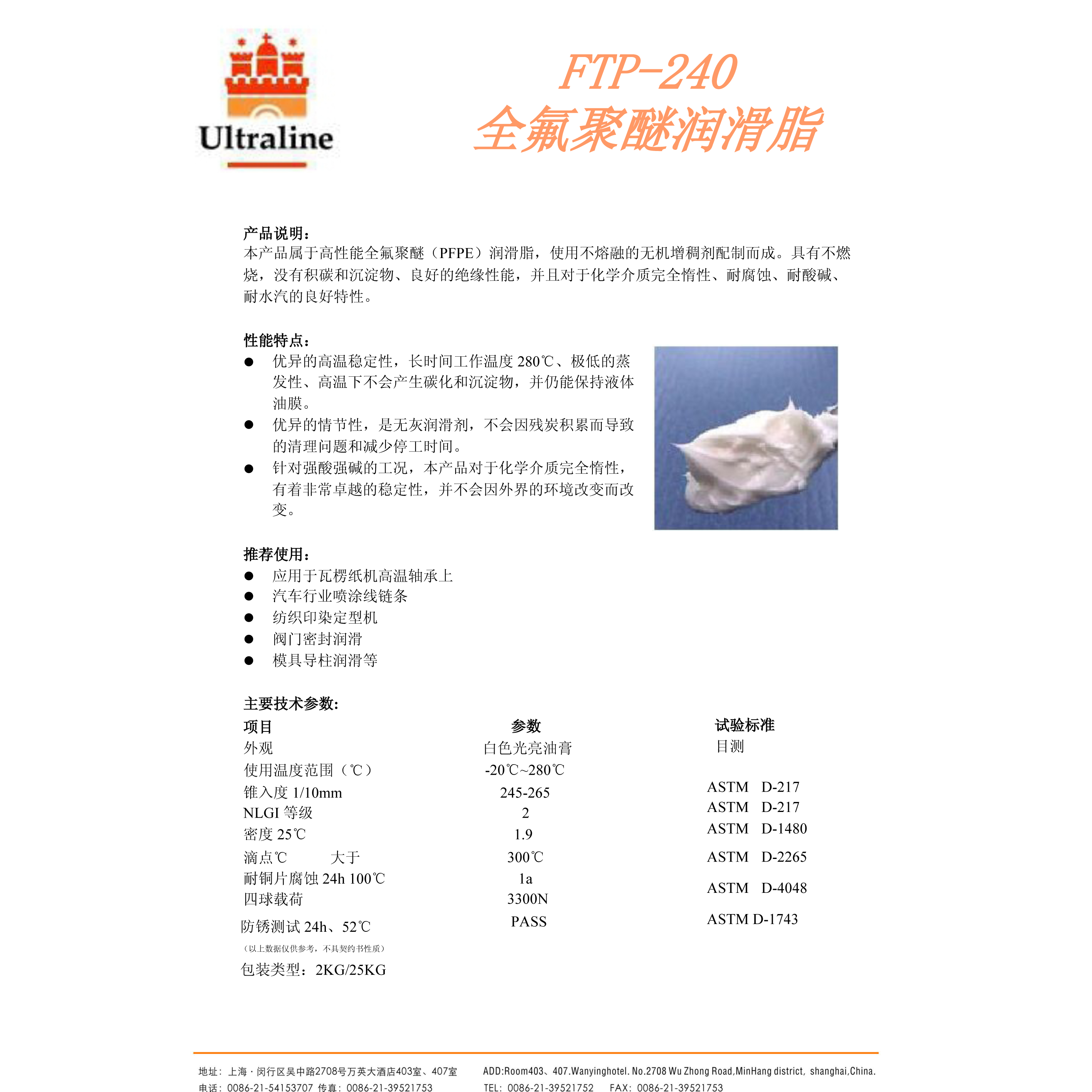 FTP-240全氟聚醚潤(rùn)滑脂FTP-240全氟聚醚潤(rùn)滑脂