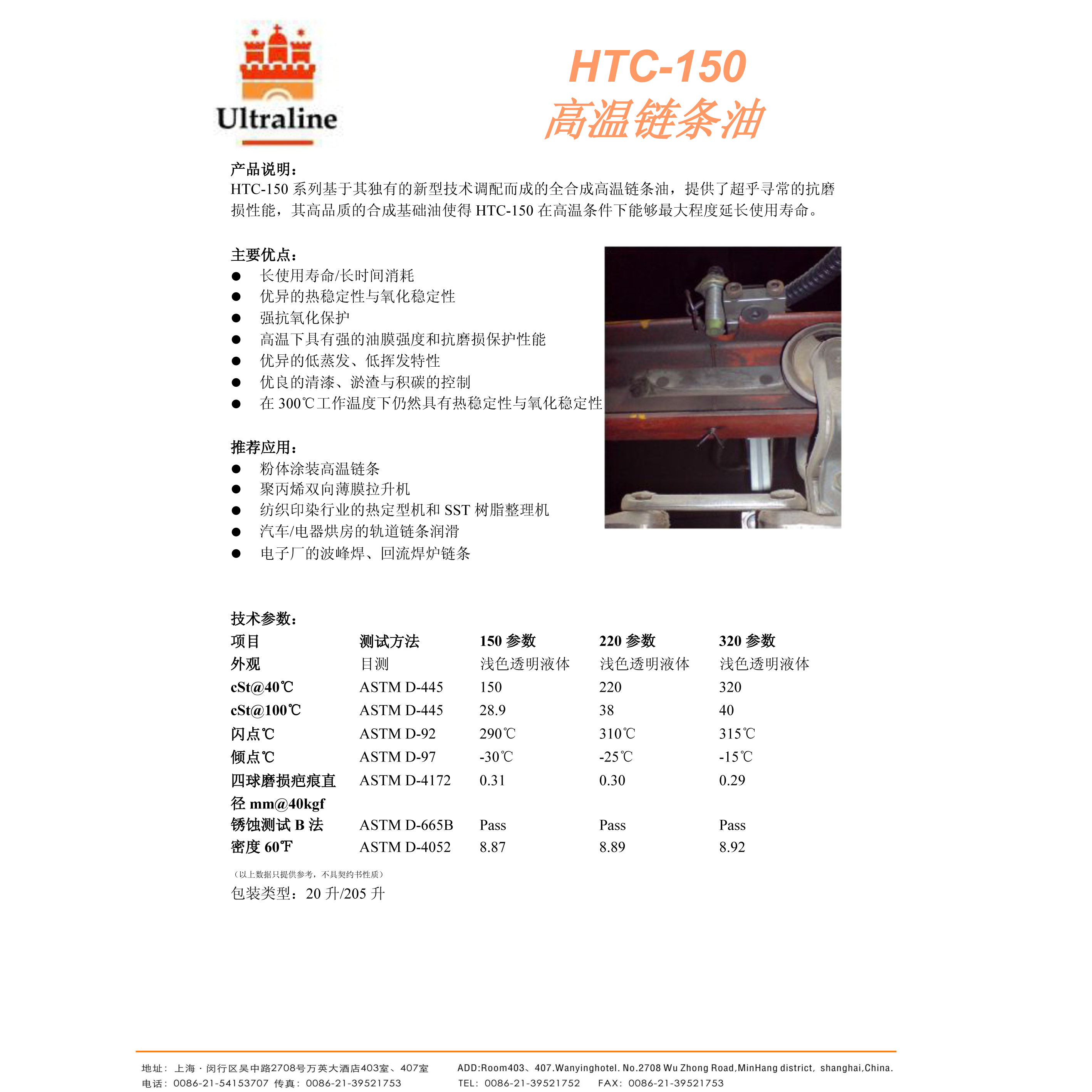 HTC-150 系列基于其獨(dú)有的新型技術(shù)調(diào)配而成的全合成高溫鏈條油,提供了超乎尋常的抗磨損性能.